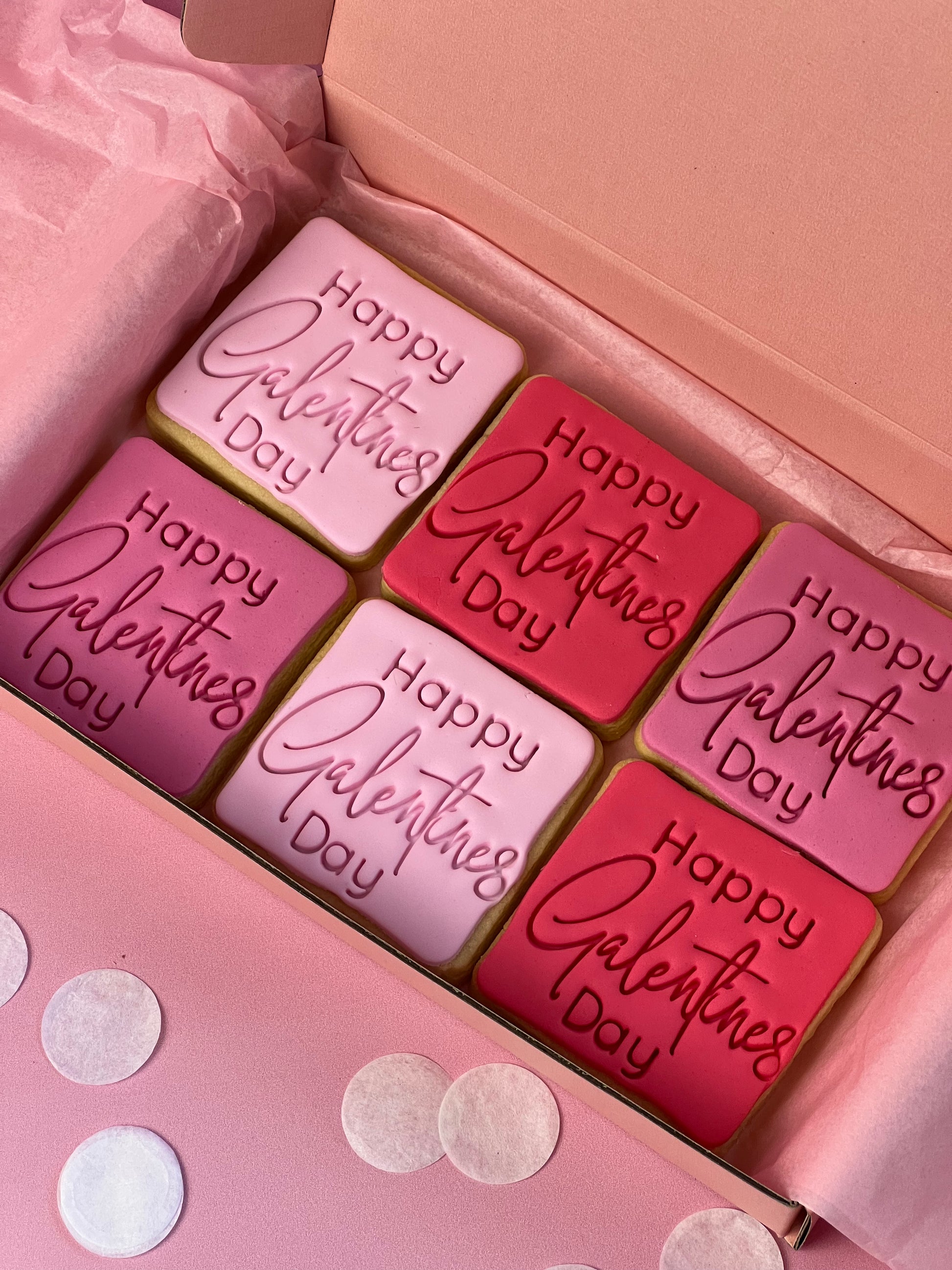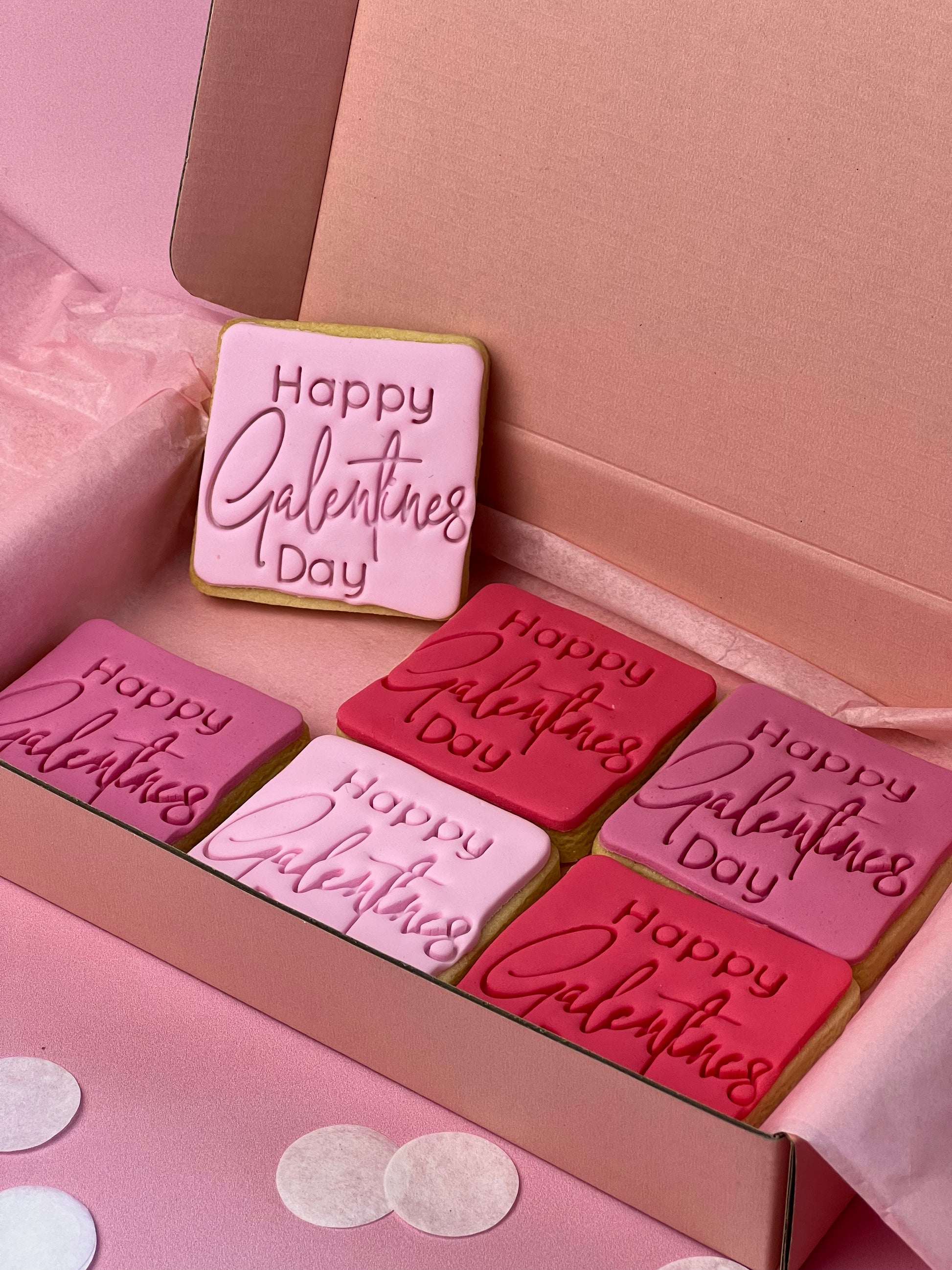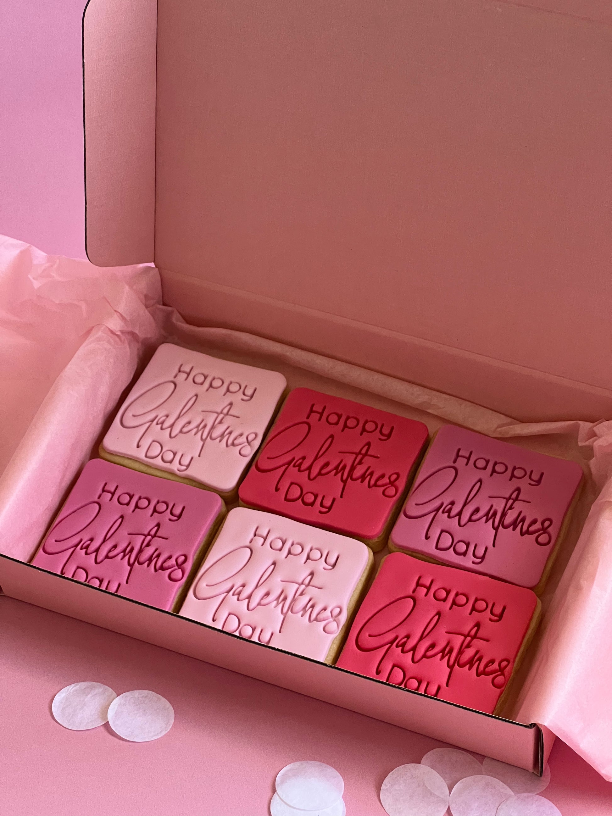 Unleash your inner goddess with our Happy Galentine's Day Square Cookies. These cookies are more than just sweet treats; they're a manifesto of girl power, packed with sass, style, and the perfect touch of sweetness. Adorned in shades of pink and red, these fondant sugar cookies are ready to join the vibey girl banter and remind you that cookies are undeniably sweeter than boys. 💕👭✨