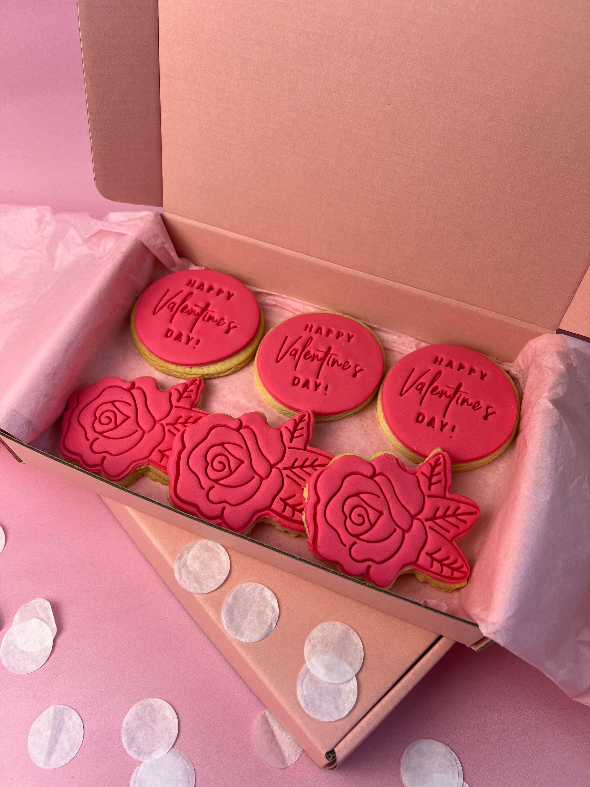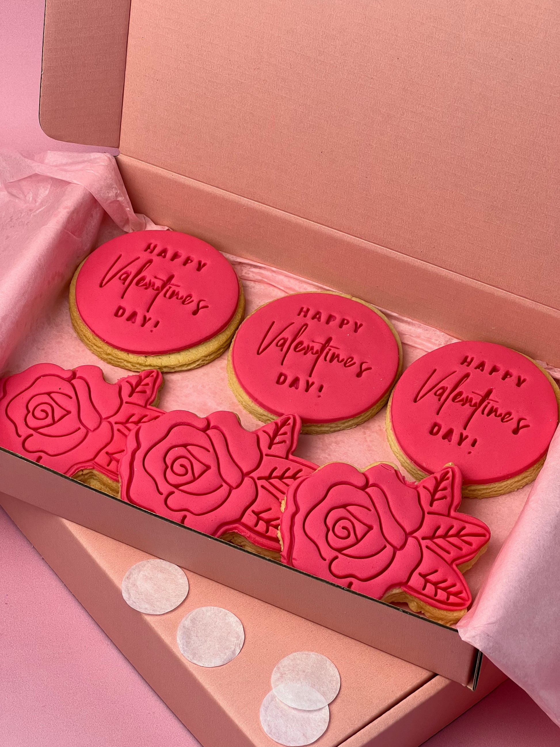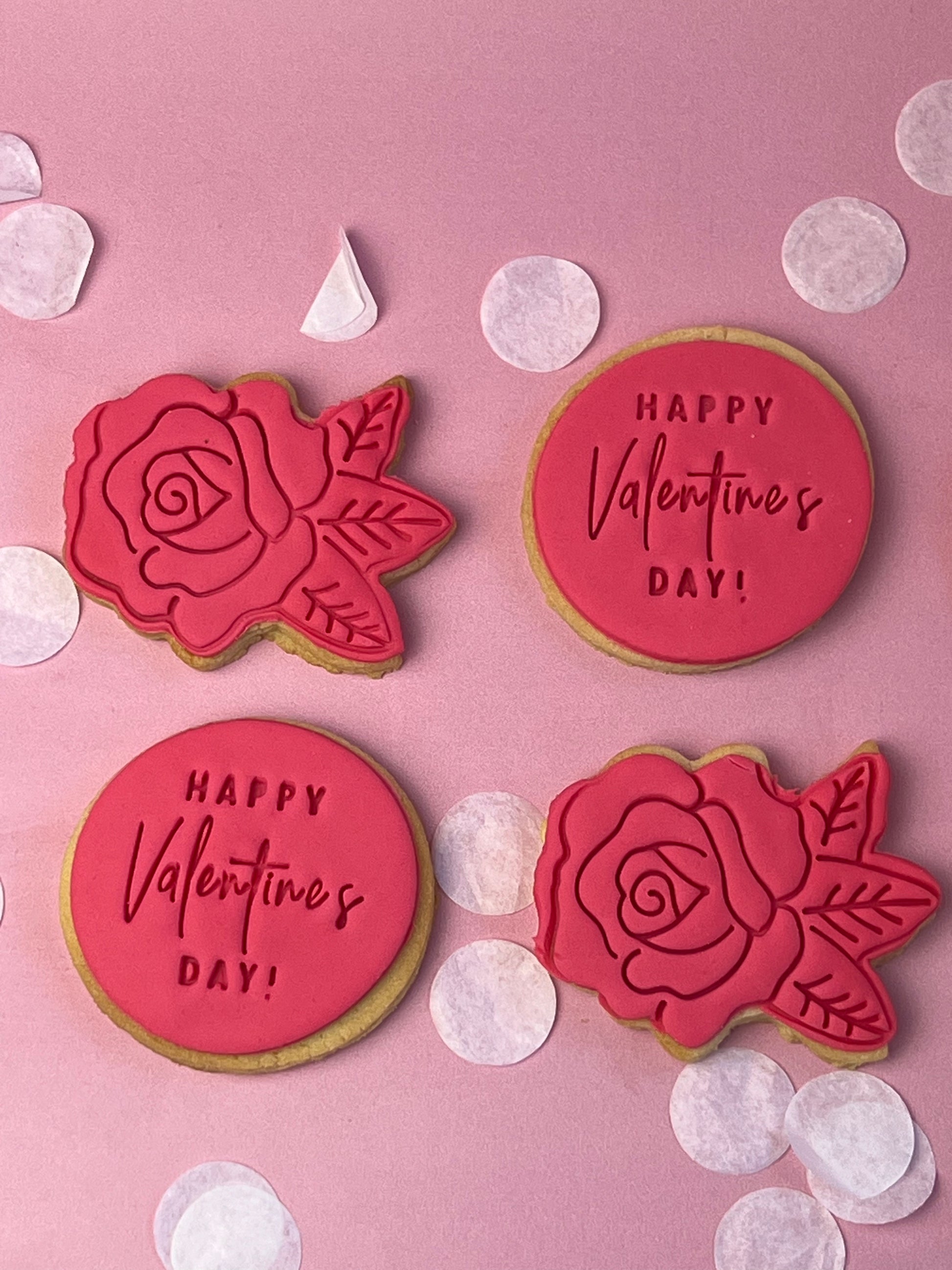 Embrace the language of love with our Happy Valentine's Day Rose Cookies. These delectable fondant sugar cookies are not just sweet treats; they're a bouquet of flavors, intricately designed in the shape of roses. In various shades of pink and red, these cookies are a poetic expression of romance and girl power. Share these edible blooms to show that love is sweet, and our cookies are the loveliest companions to any celebration. ๐น๐