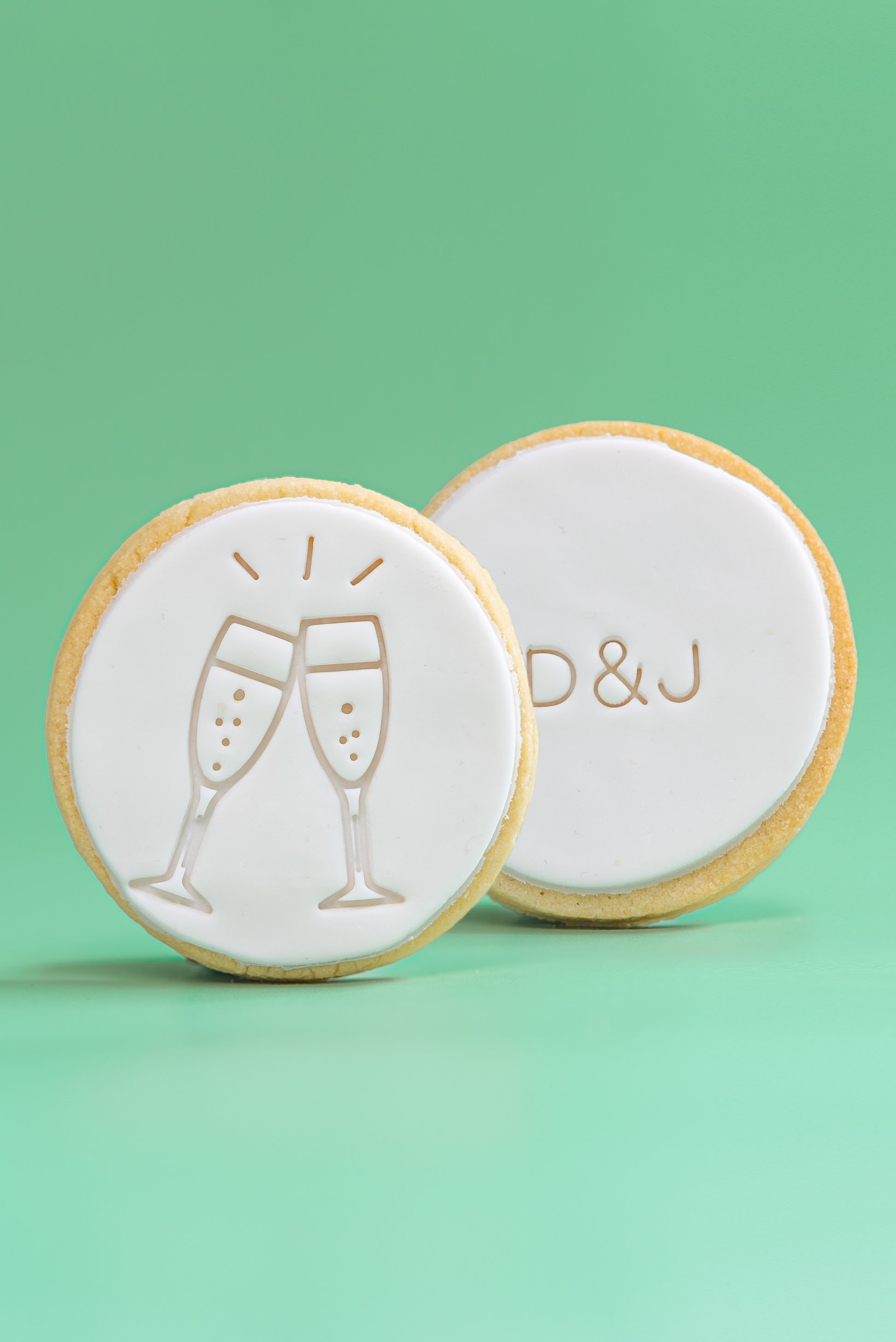 Your cookie box will come with two designs pictured, one with customised Initials of the happy couple, split evenly between the quantity selected.