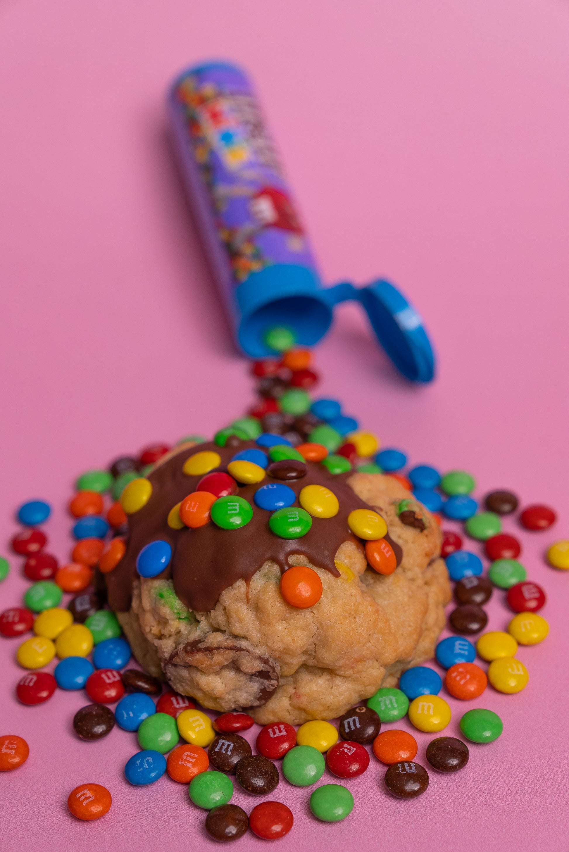 Our M&M Chocolate Chip Cookie is a colourful twist on the classic favourite. With M&M candies mixed into the buttery cookie dough and generously sprinkled on top, every bite is a burst of chocolatey goodness and playful delight. Enjoy the perfect combination of chocolate chips and M&M candies in this irresistible treat.