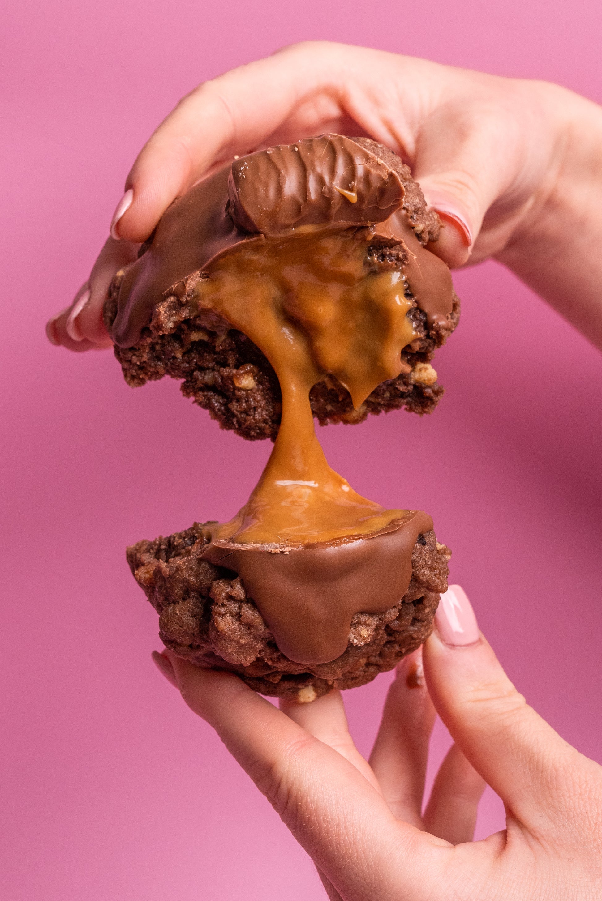 Indulge in the ultimate Twix Caramel Chocolate Chip cookie, featuring a soft and chewy chocolate chip base, gooey caramel filling, and a decadent Cadbury milk chocolate topping. Complete with a delightful Twix bar on top, this cookie offers the perfect combination of fudgy chocolate chip goodness, sticky caramel sweetness, and the classic taste of Twix. Get ready to savour the perfect blend of textures and flavours in every bite.