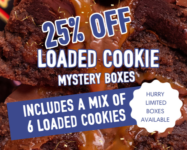 Allergen Information: Our Ultimate Mystery Boxes may contain common allergens such as wheat, dairy, eggs, and nuts. If you have specific dietary needs, please check our Build Your Own Loaded Cookie Box for customisation options.